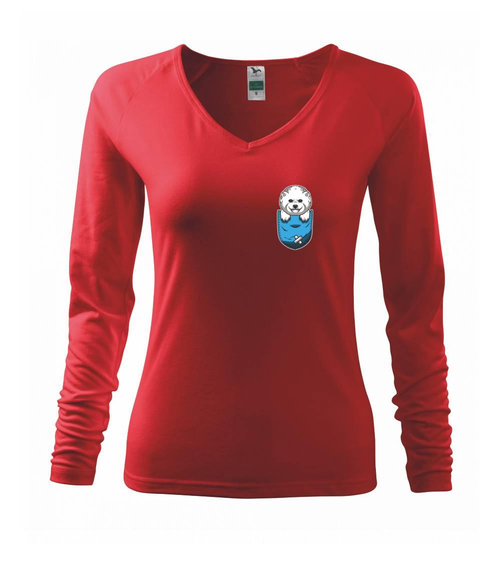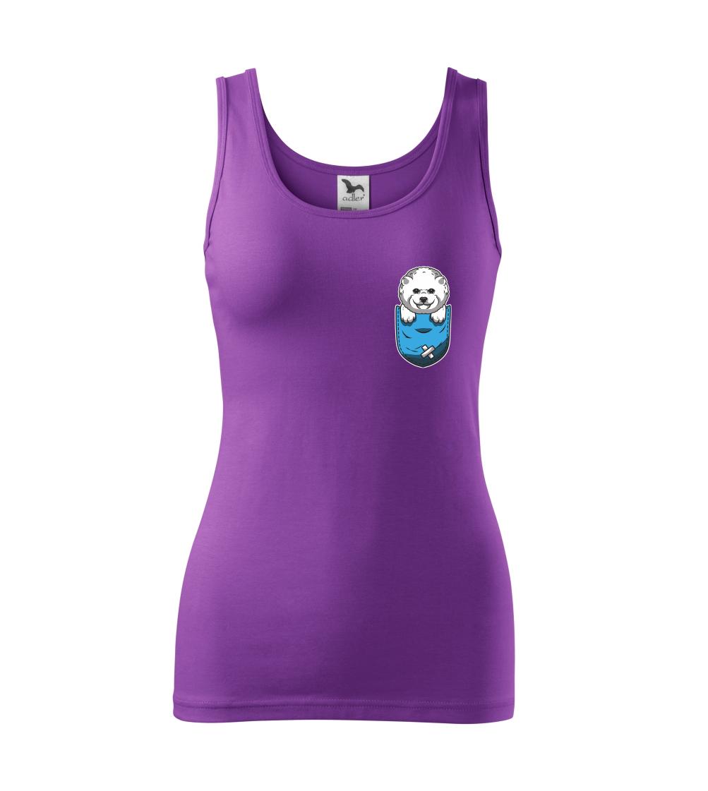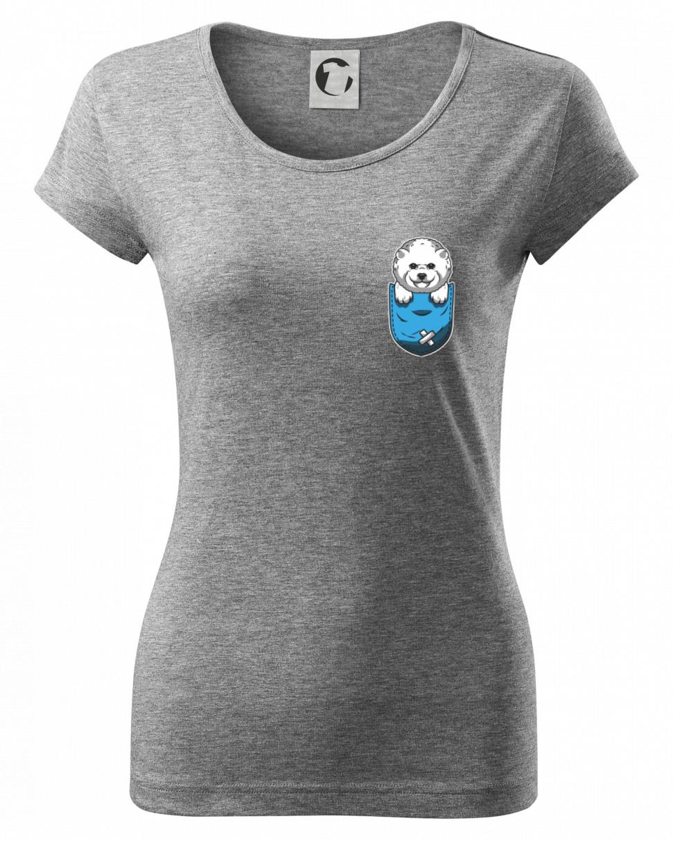 Triko s bišonkem jako skvělý dárek pro paničku bišonka. Bišonek na triku je esence roztomilosti. Krásný bílý malý pes společenské povahy je jeden z nejroztomilejších, které si můžete u nás pořídit.