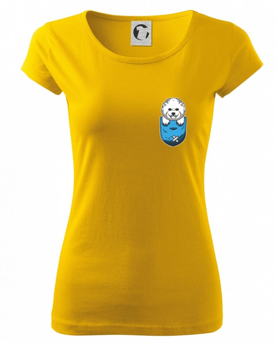 Triko s bišonkem jako skvělý dárek pro paničku bišonka. Bišonek na triku je esence roztomilosti. Krásný bílý malý pes společenské povahy je jeden z nejroztomilejších, které si můžete u nás pořídit.