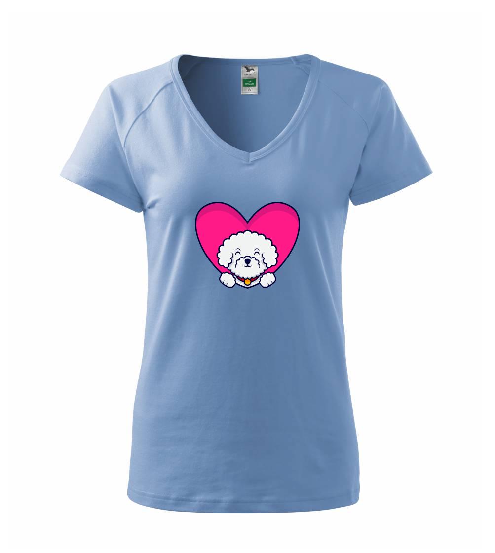 Triko s bišonkem jako skvělý dárek pro paničku bišonka. Bišonek na triku je esence roztomilosti. Krásný bílý malý pes společenské povahy je jeden z nejroztomilejších, které si můžete u nás pořídit.