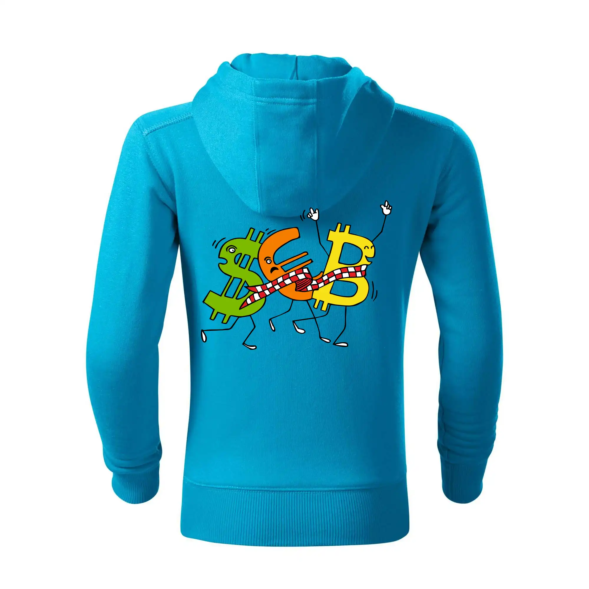 Menové tričko so symbolmi dolár, euro a bitcoin. Tričko pre zmenárnika alebo bankára.
