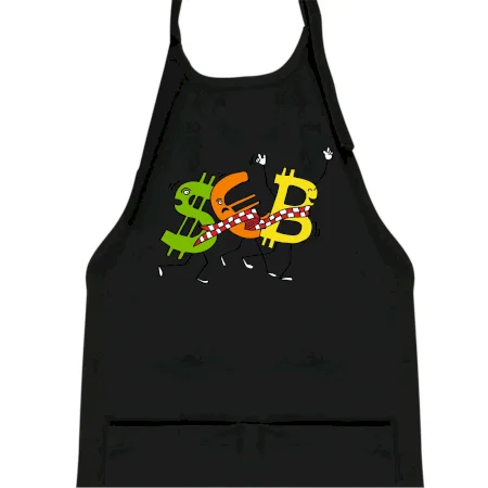 Menové tričko so symbolmi dolár, euro a bitcoin. Tričko pre zmenárnika alebo bankára.