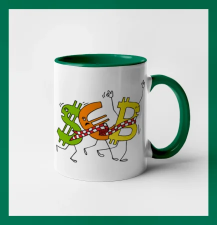 Menové tričko so symbolmi dolár, euro a bitcoin. Tričko pre zmenárnika alebo bankára.