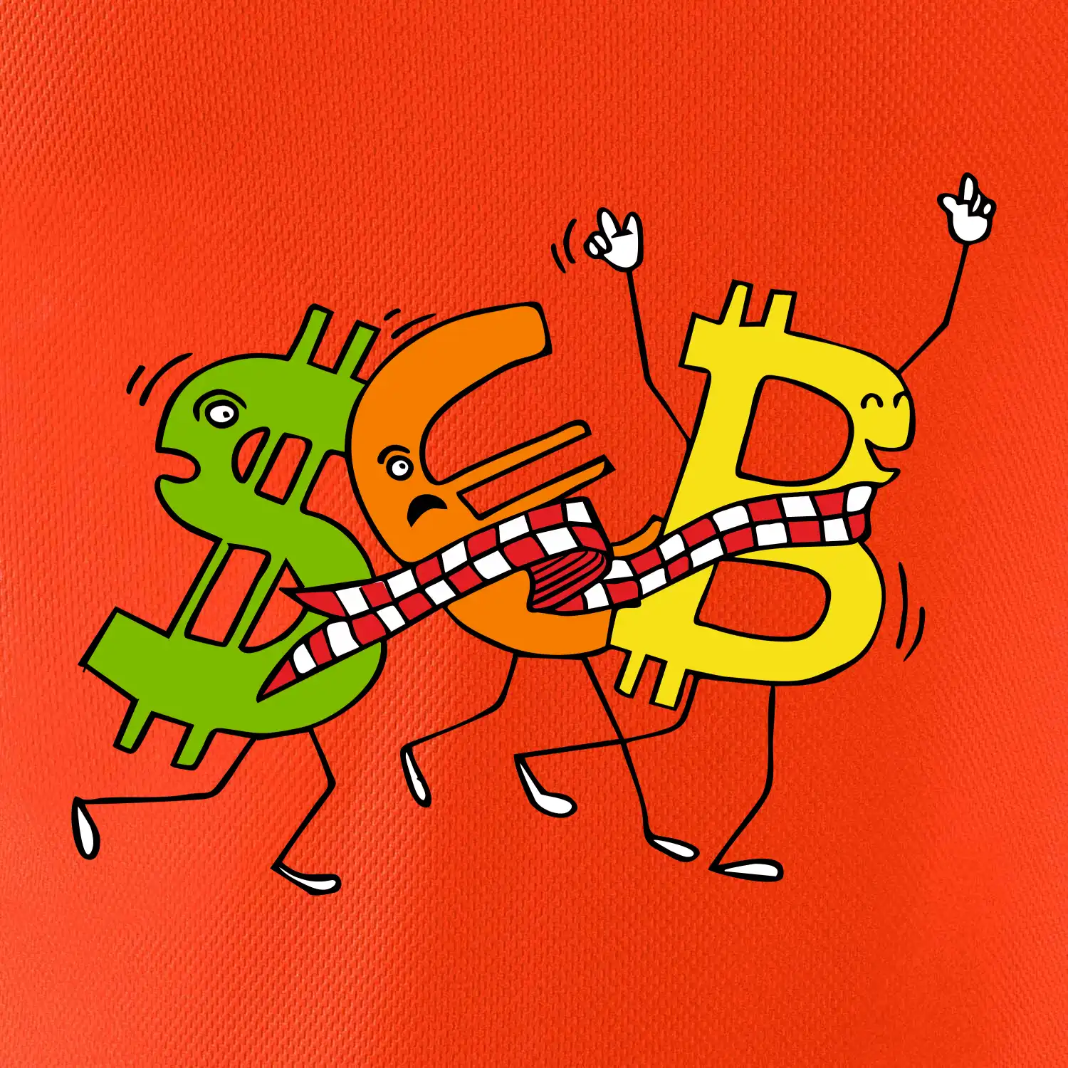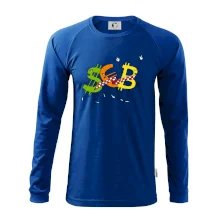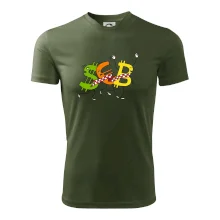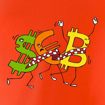 Menové tričko so symbolmi dolár, euro a bitcoin. Tričko pre zmenárnika alebo bankára.