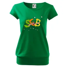 Menové tričko so symbolmi dolár, euro a bitcoin. Tričko pre zmenárnika alebo bankára.