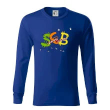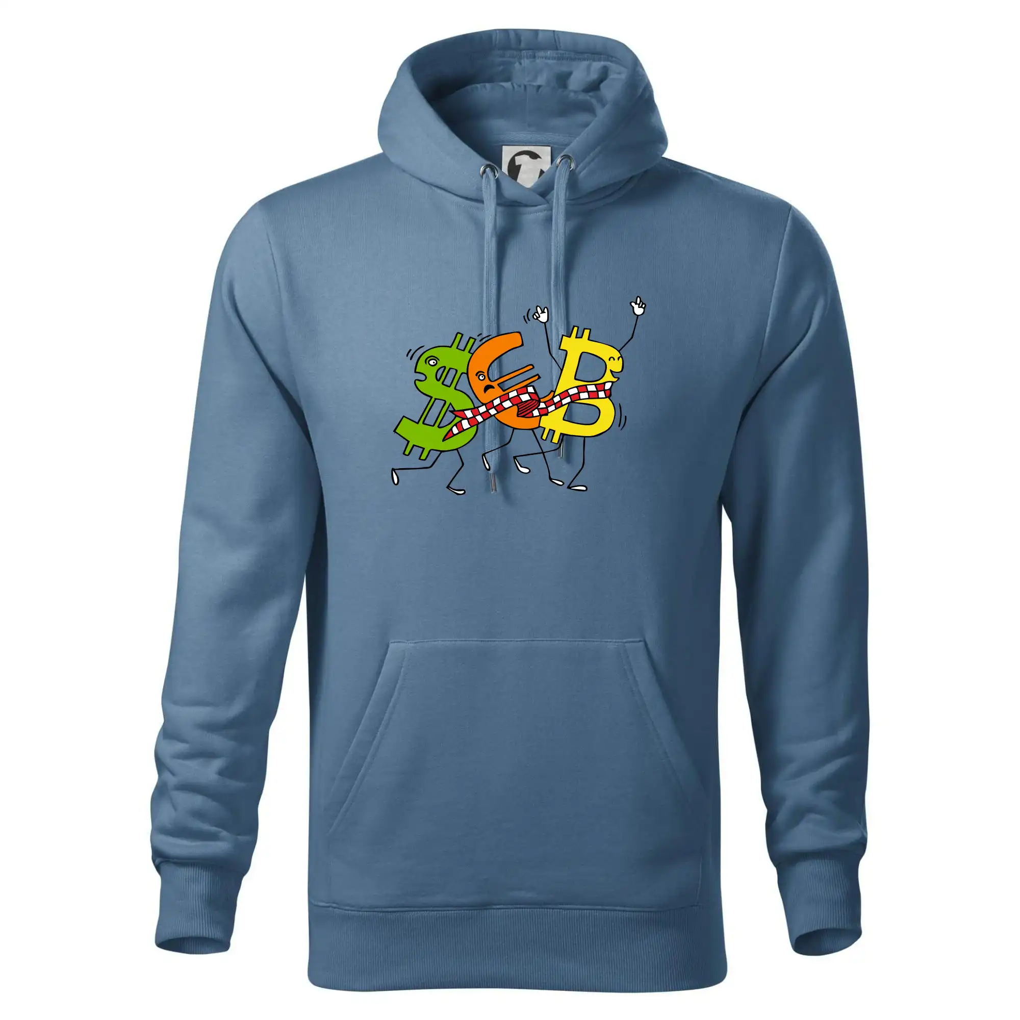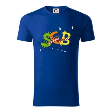 Menové tričko so symbolmi dolár, euro a bitcoin. Tričko pre zmenárnika alebo bankára.