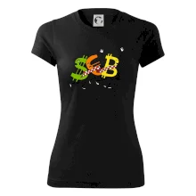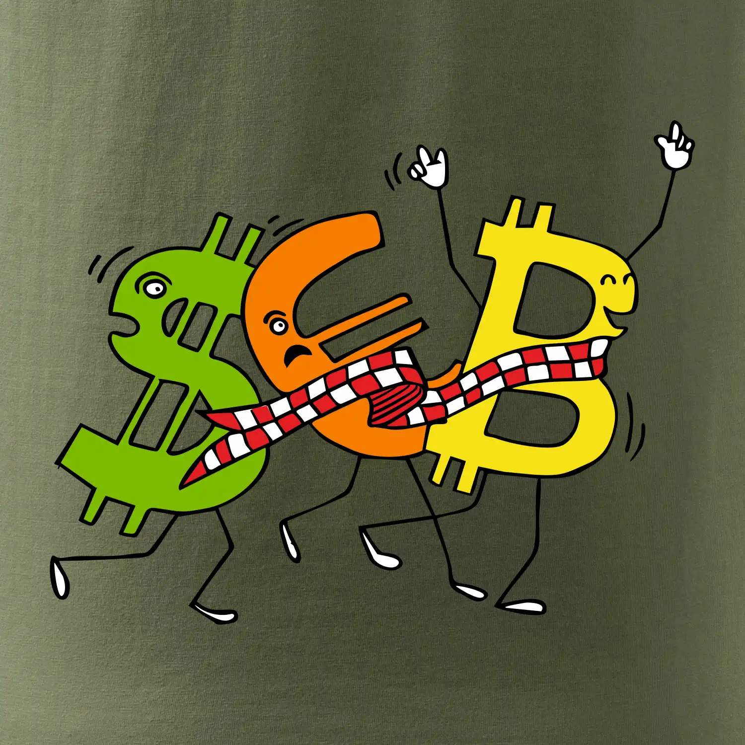 Menové tričko so symbolmi dolár, euro a bitcoin. Tričko pre zmenárnika alebo bankára.