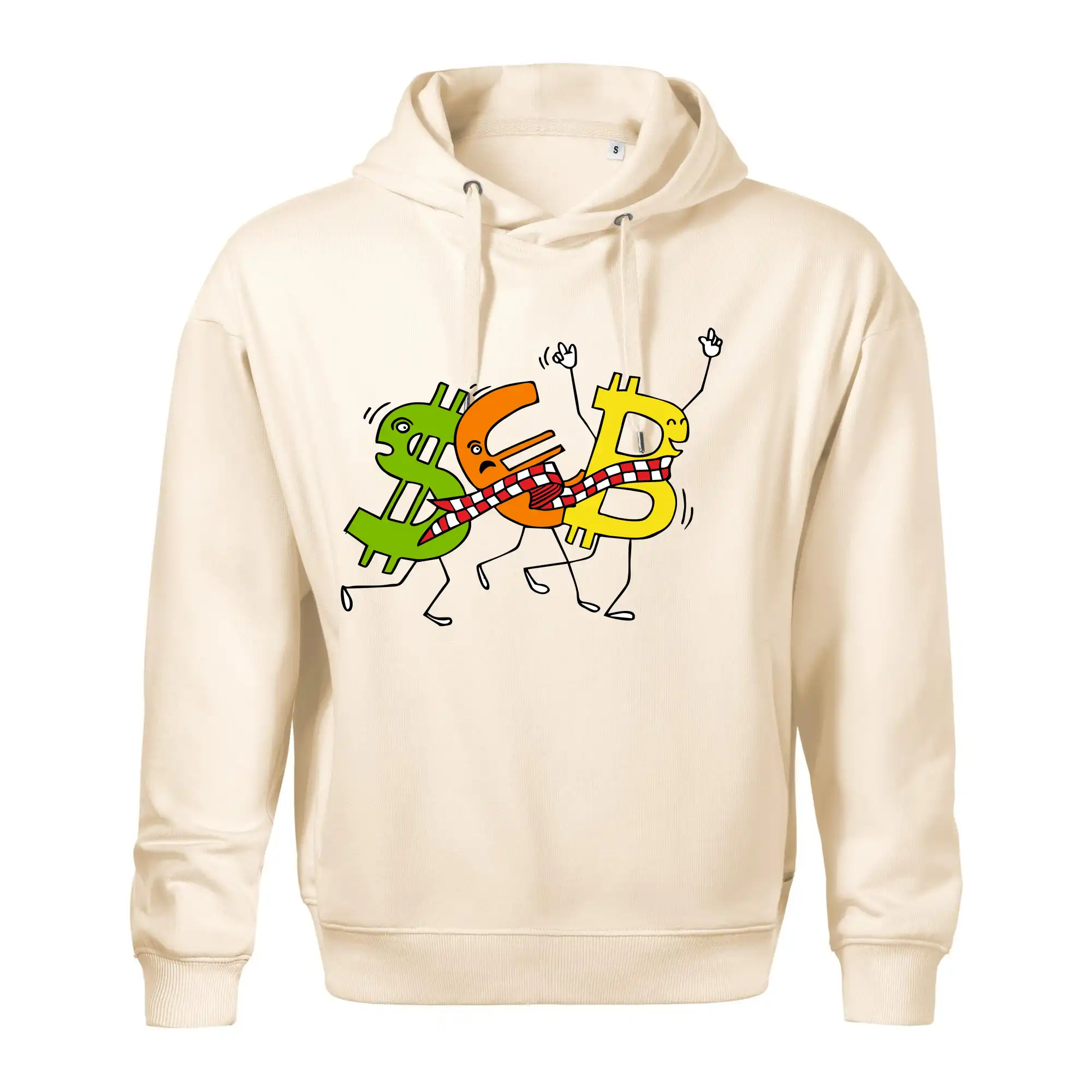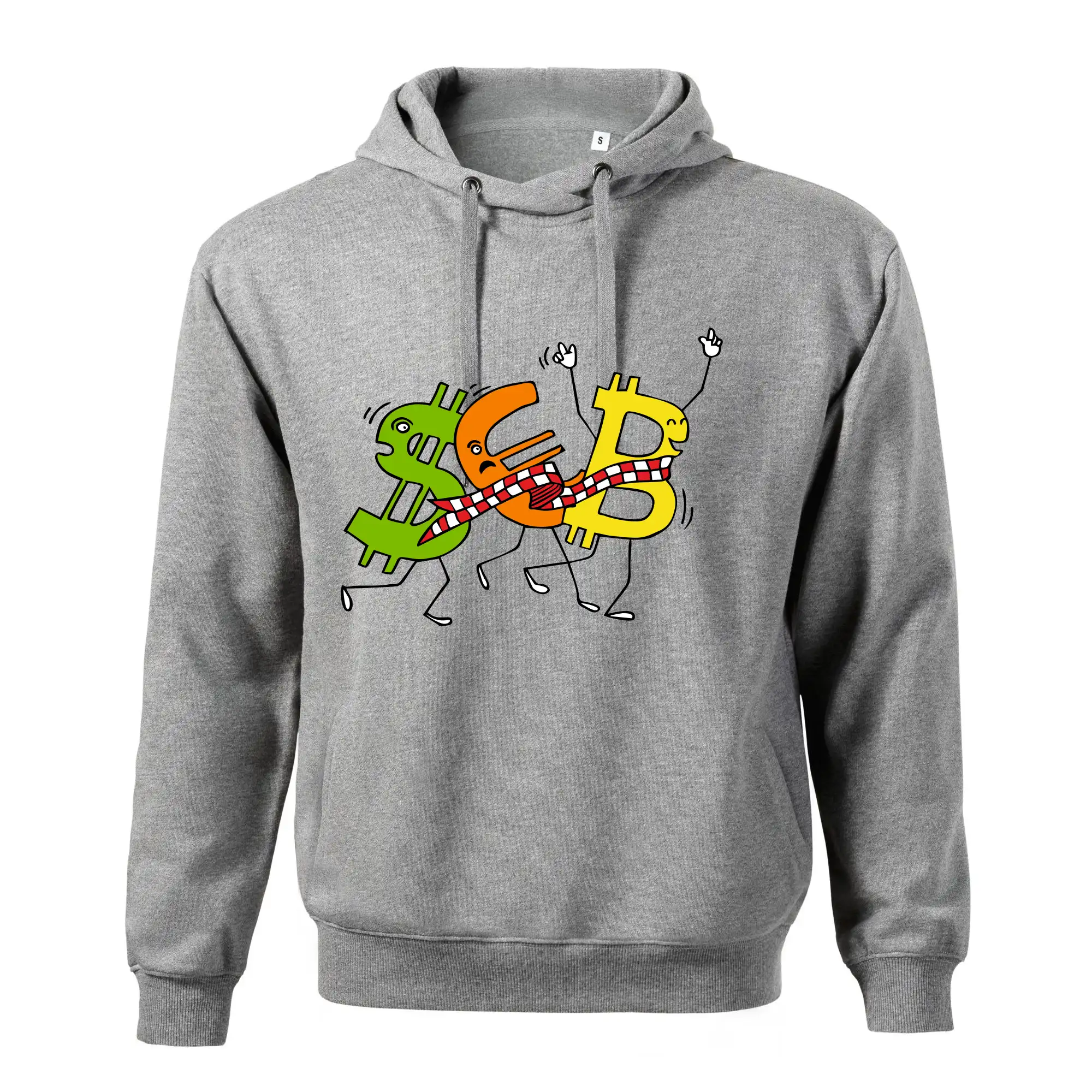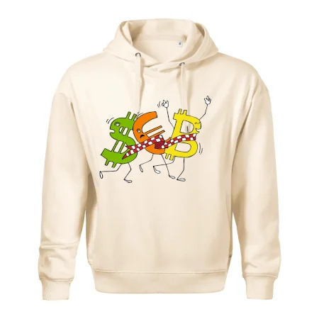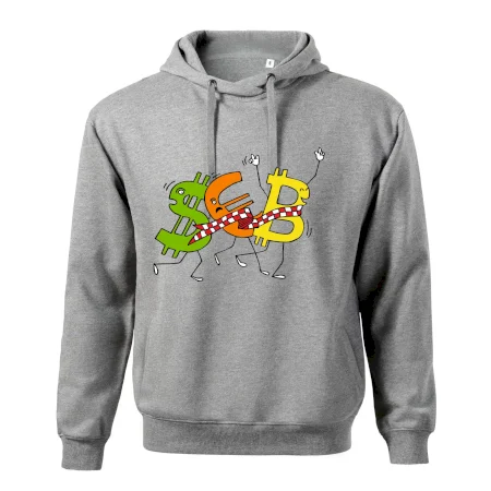 Menové tričko so symbolmi dolár, euro a bitcoin. Tričko pre zmenárnika alebo bankára.