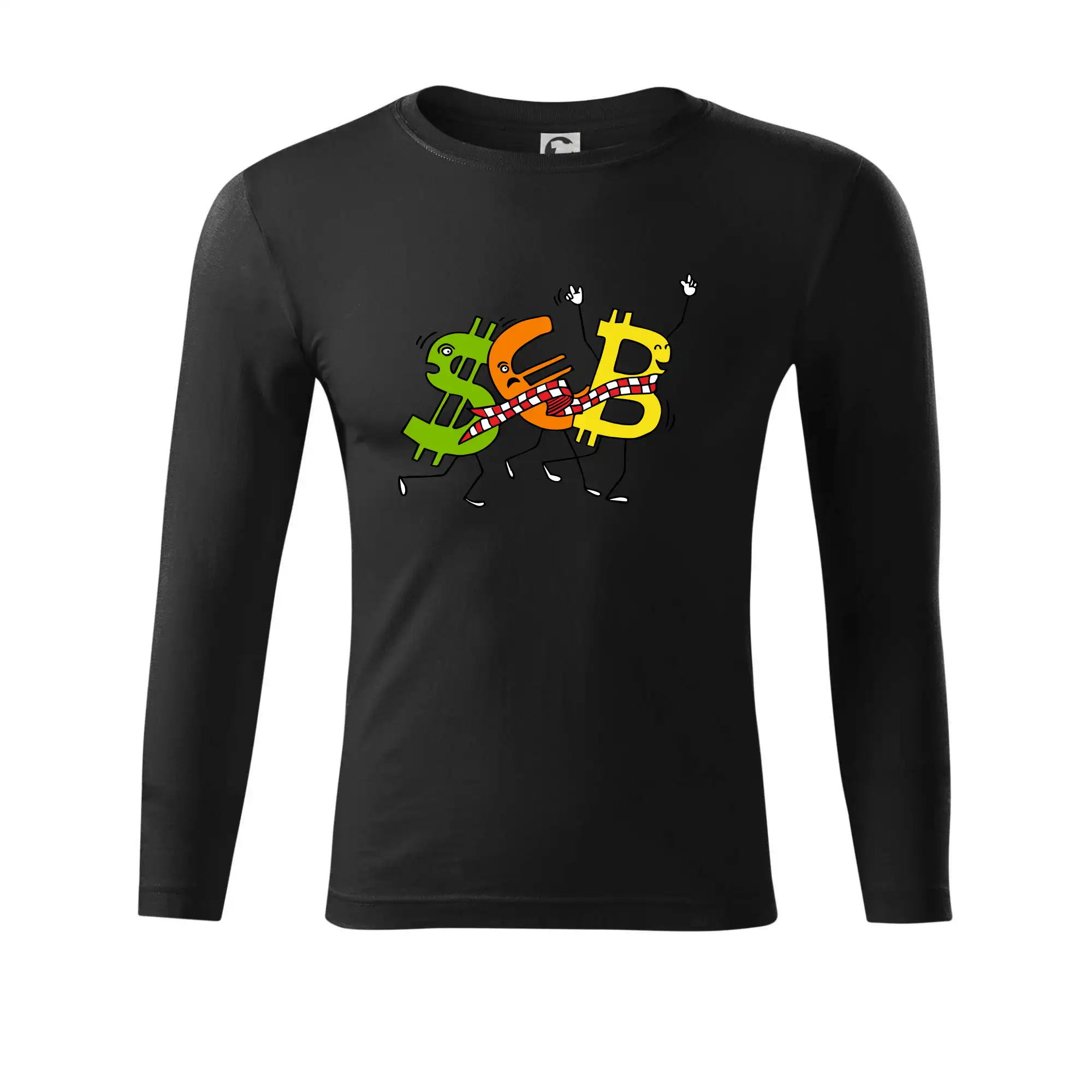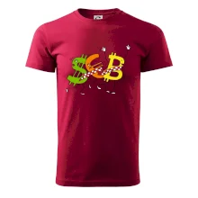Menové tričko so symbolmi dolár, euro a bitcoin. Tričko pre zmenárnika alebo bankára.