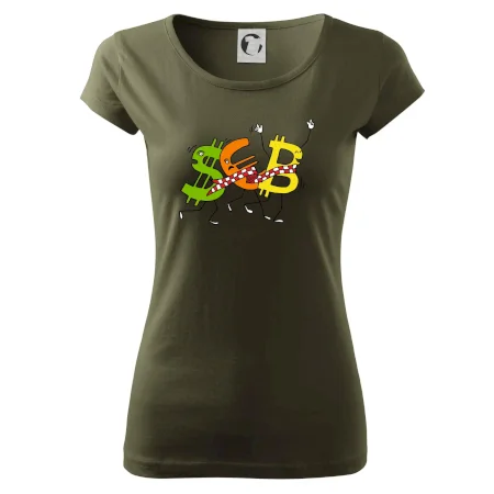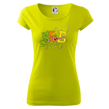 Menové tričko so symbolmi dolár, euro a bitcoin. Tričko pre zmenárnika alebo bankára.