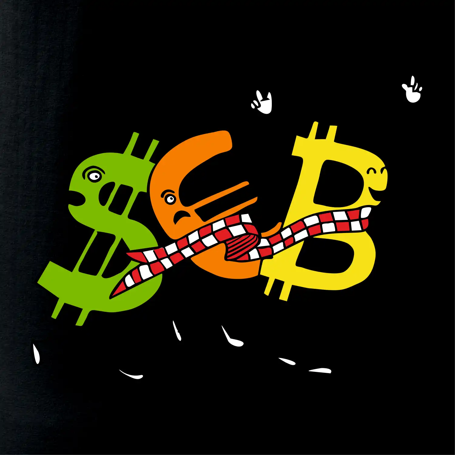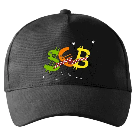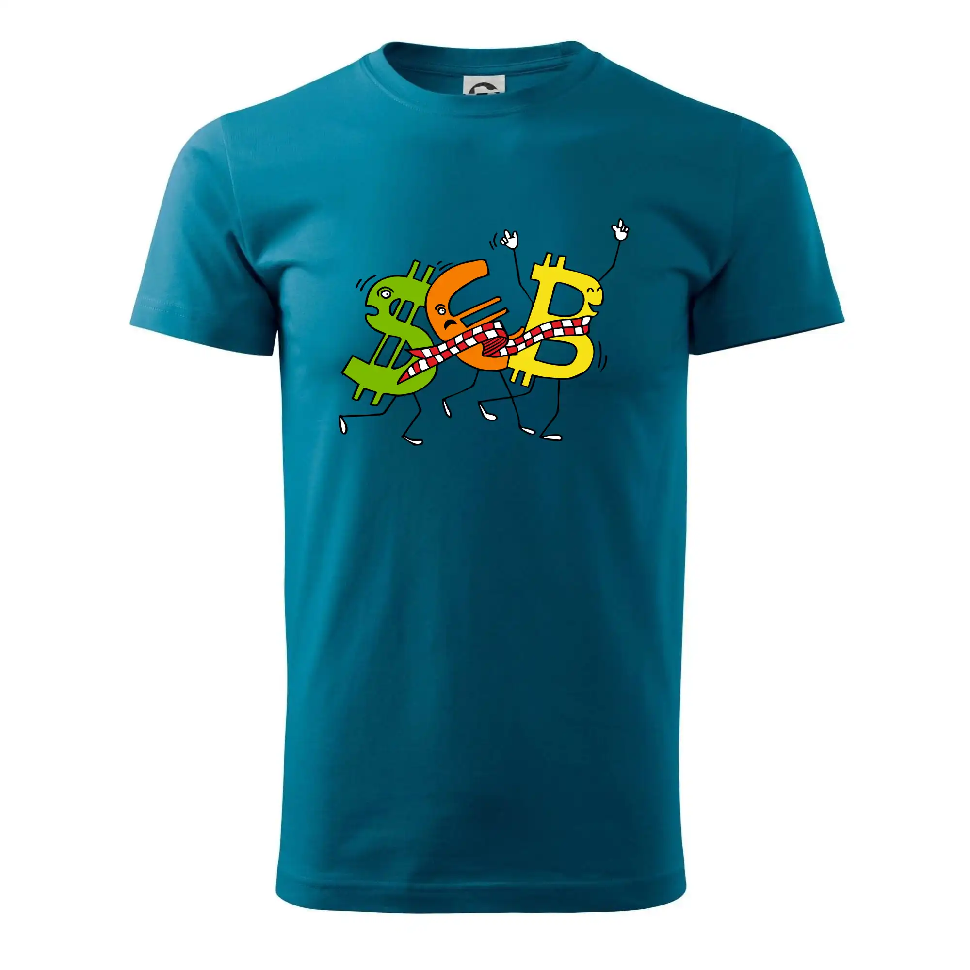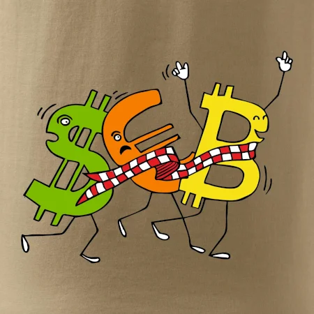 Menové tričko so symbolmi dolár, euro a bitcoin. Tričko pre zmenárnika alebo bankára.