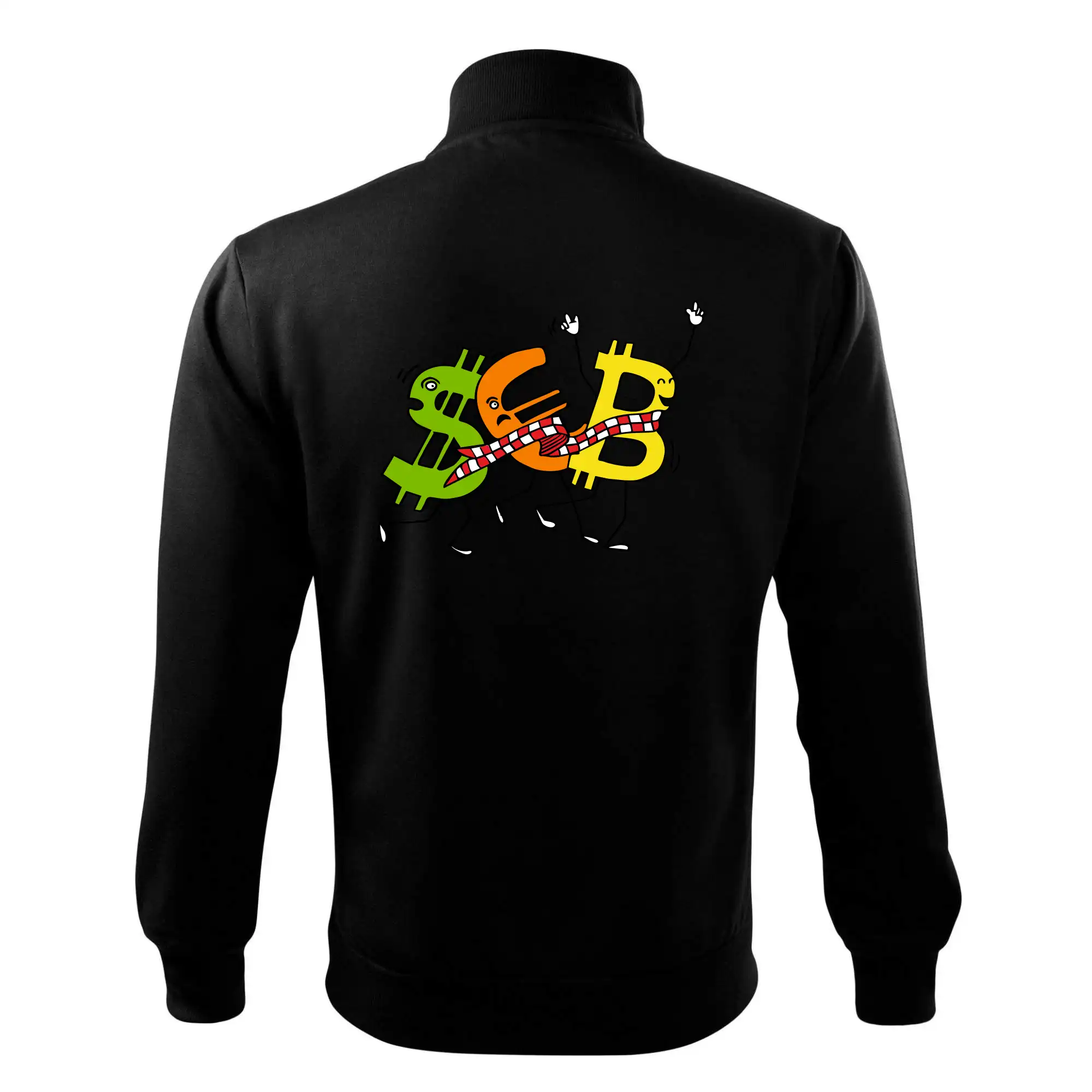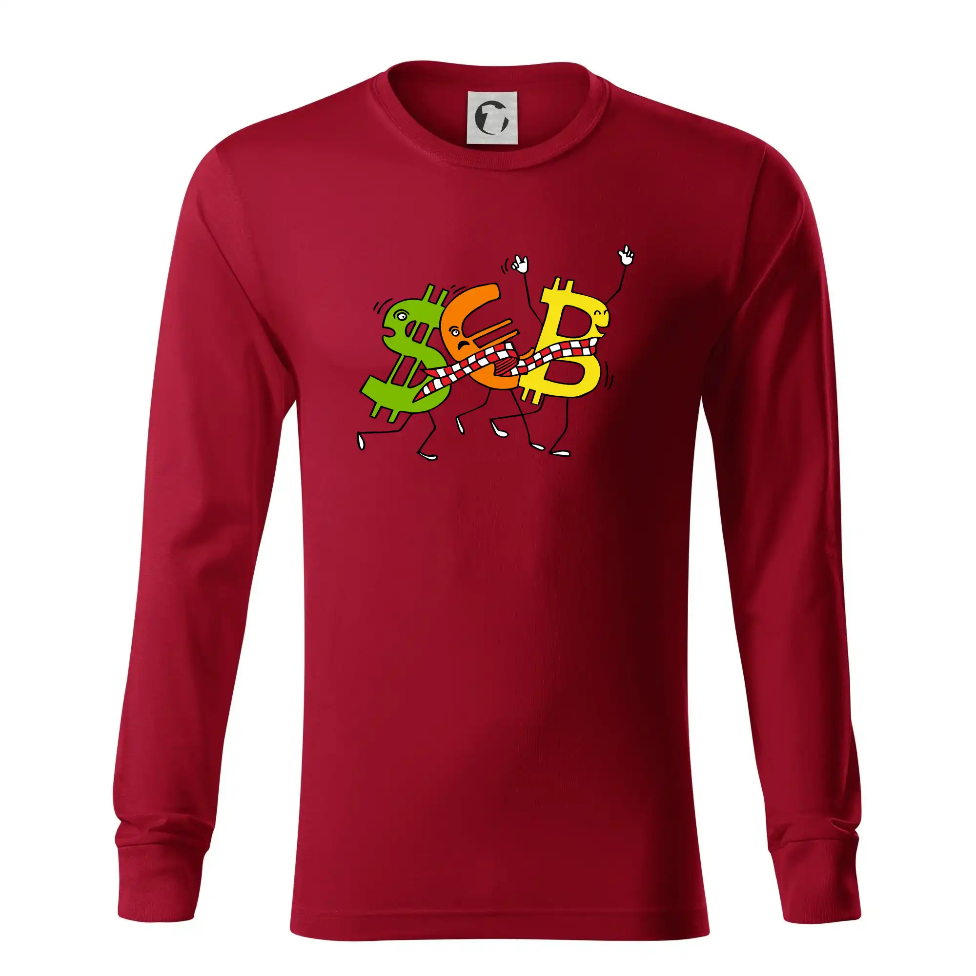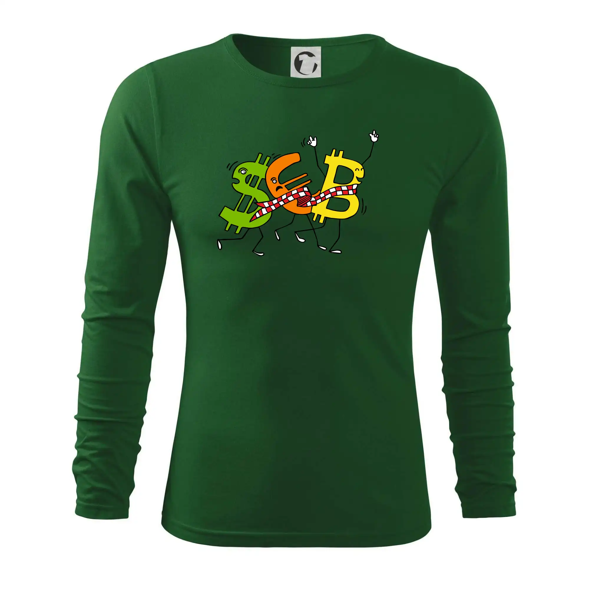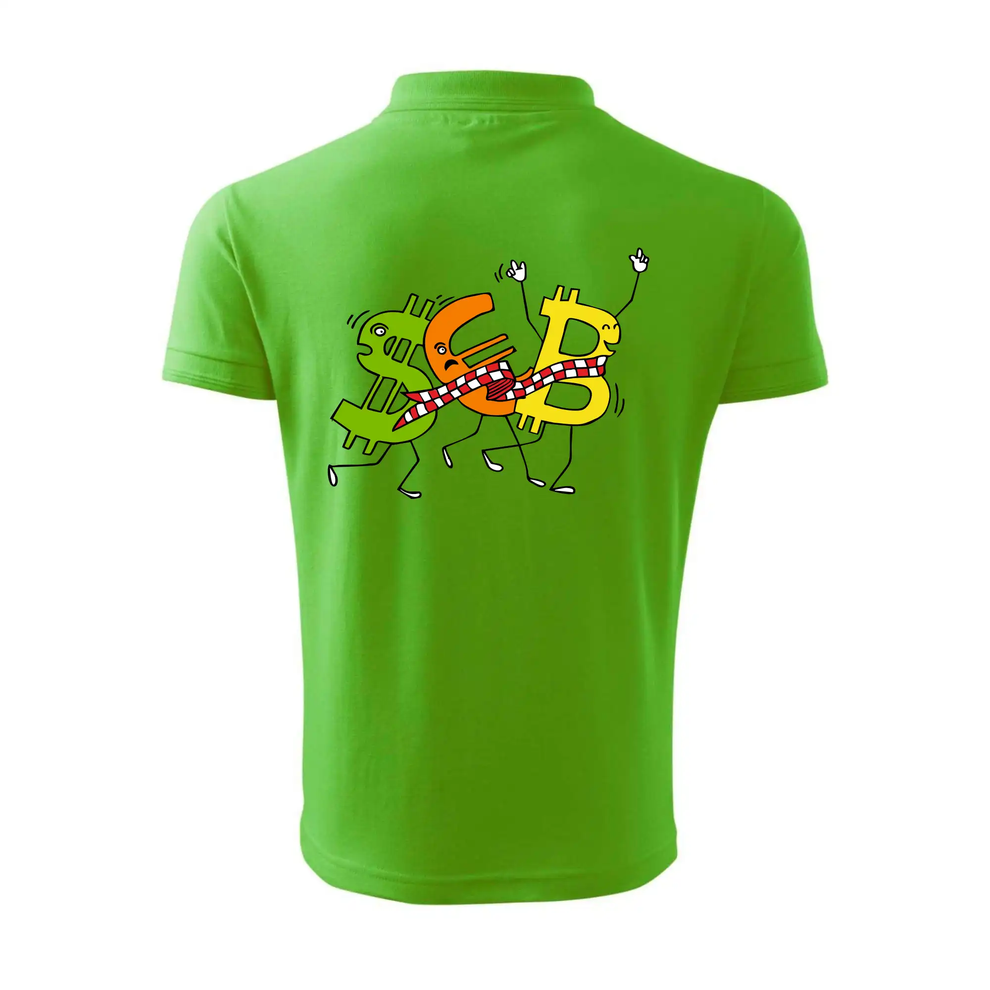 Menové tričko so symbolmi dolár, euro a bitcoin. Tričko pre zmenárnika alebo bankára.