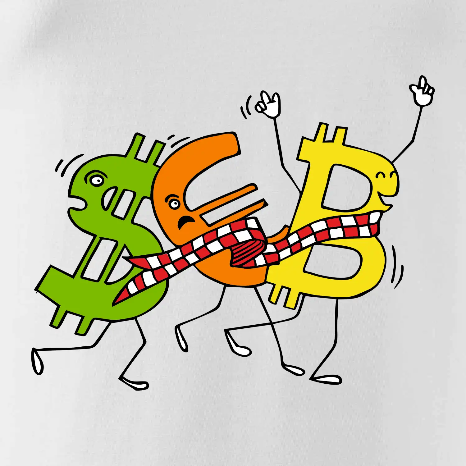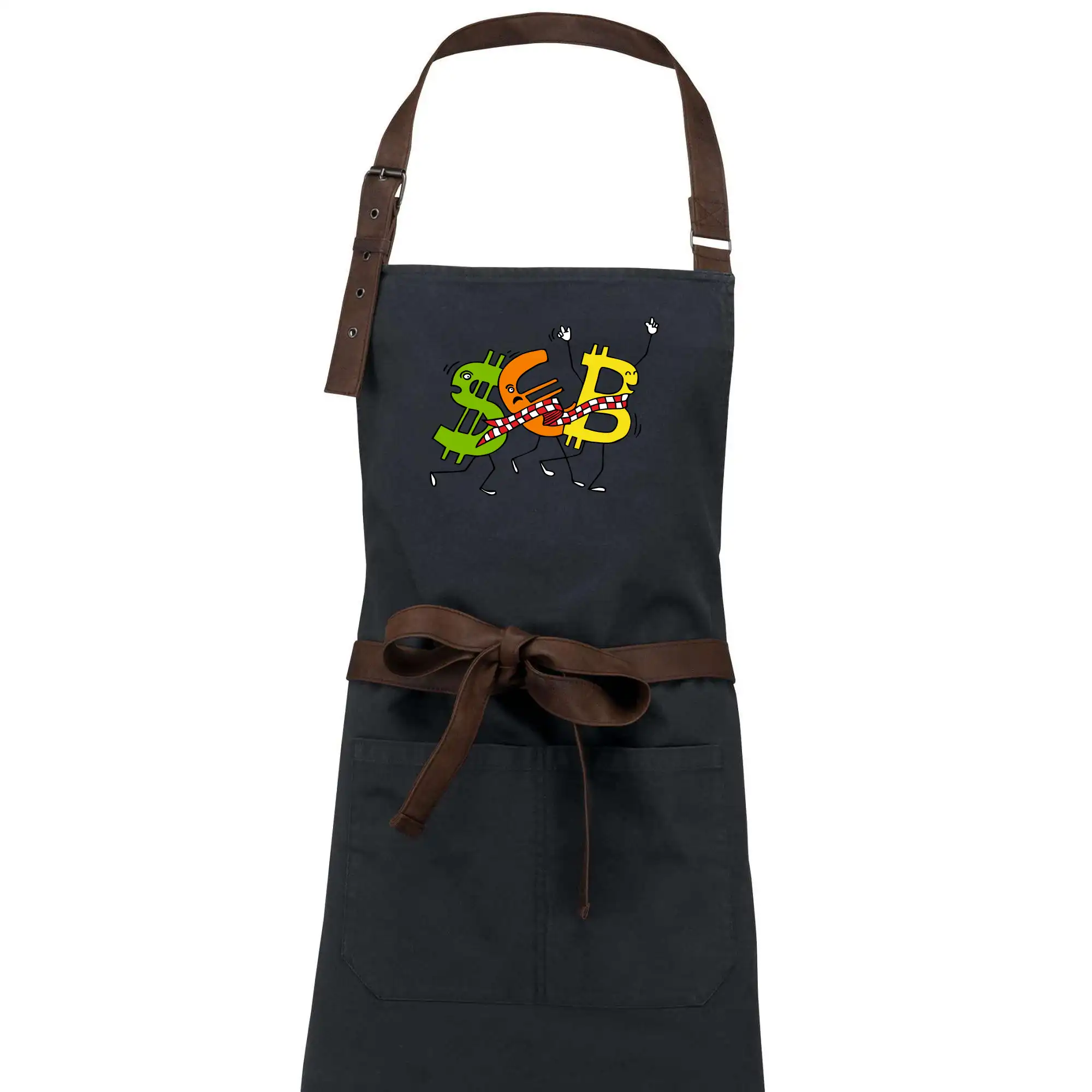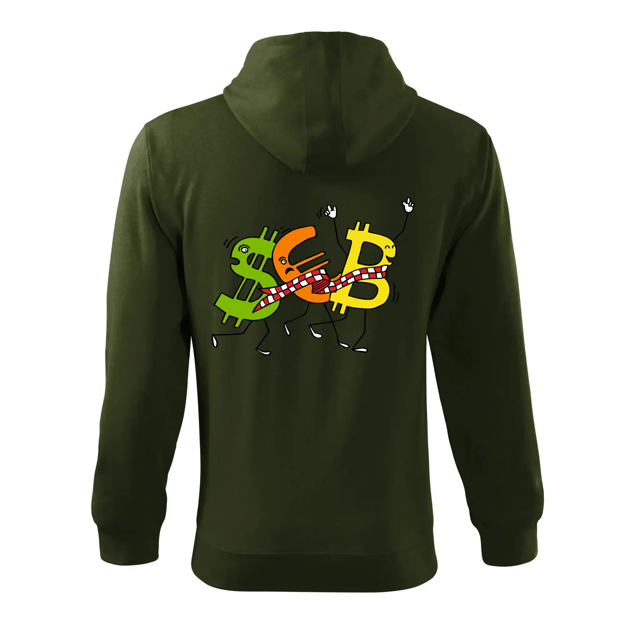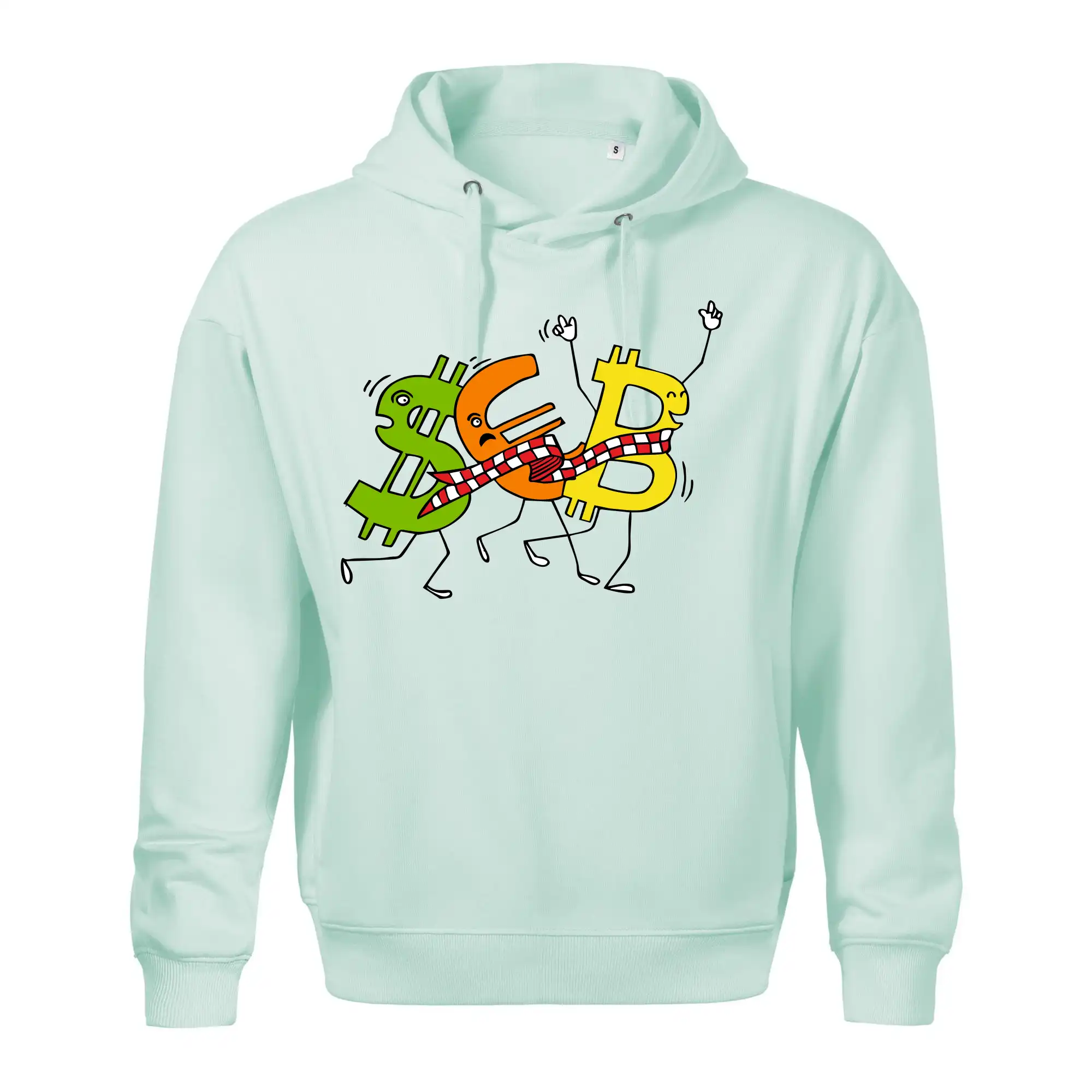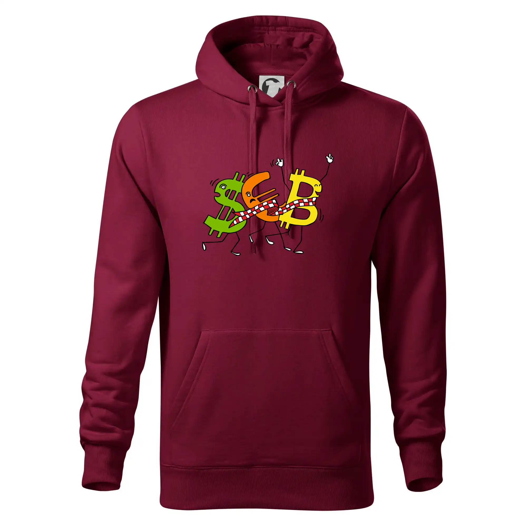 Menové tričko so symbolmi dolár, euro a bitcoin. Tričko pre zmenárnika alebo bankára.