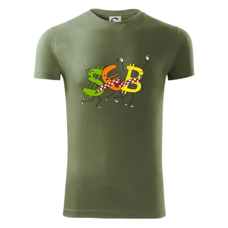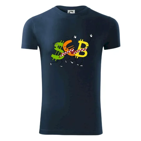 Menové tričko so symbolmi dolár, euro a bitcoin. Tričko pre zmenárnika alebo bankára.