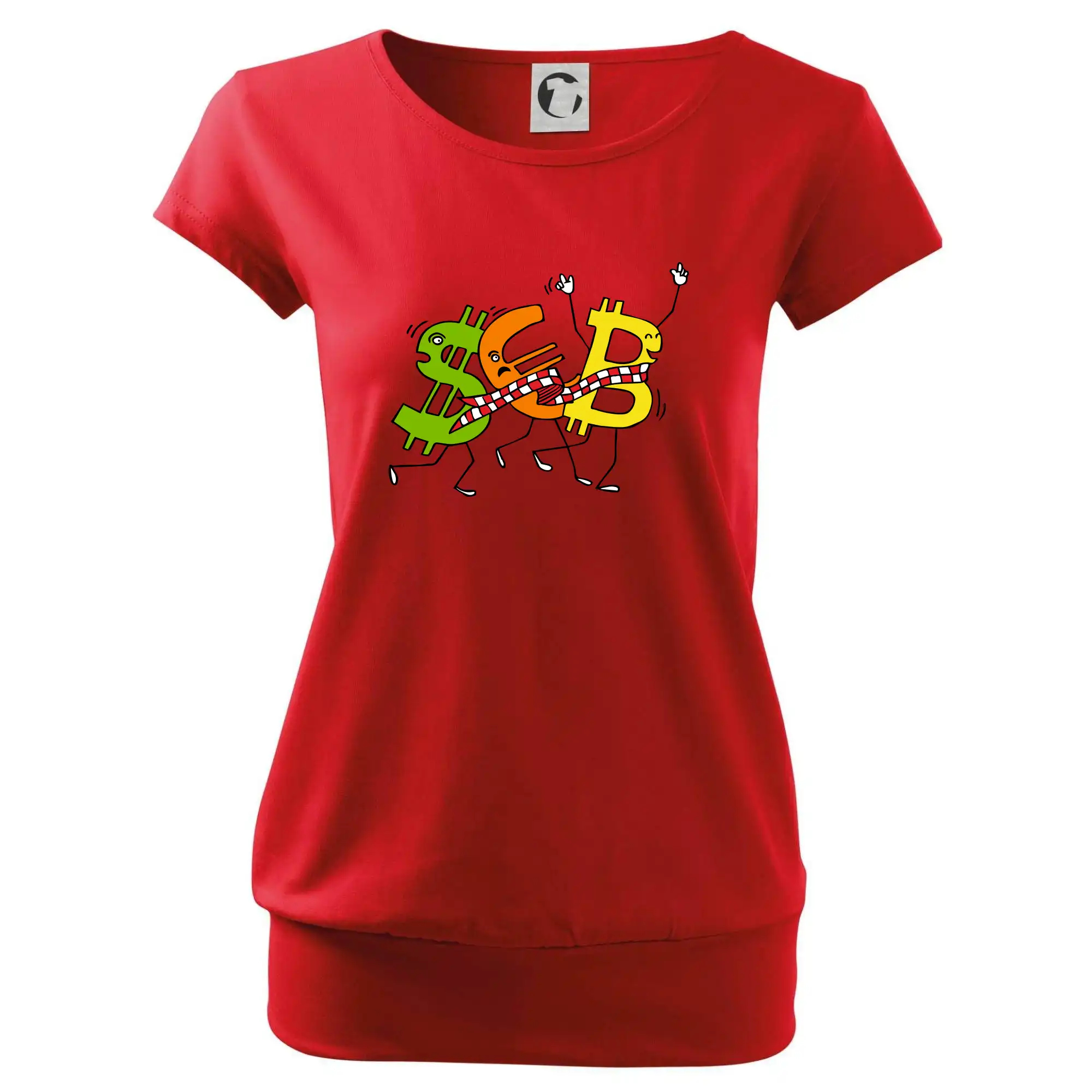 Menové tričko so symbolmi dolár, euro a bitcoin. Tričko pre zmenárnika alebo bankára.