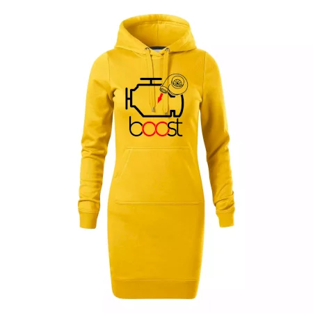 Dámske mikinové šaty MALFINI Snap 419 sú ideálnou voľbou pre ženy, ktoré hľadajú pohodlný a štýlový kúsok na voľný čas alebo každodenné nosenie. Ľahko vypasovaný strih s bočnými švami podčiarkuje ženskú siluetu, zatiaľ čo kapucňa s podšívkou a sťahovacou šnúrkou dodáva ležérny vzhľad. Šaty majú dĺžku nad kolená a sú vybavené našitým vreckom v štýle „klokanky“. Materiál je mäkký a príjemný na dotyk grâce à smesi bavlny a polyesteru s nepočesanou vnútornou stranou.