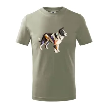 Detské tričko strednej gramáže s bočnými švami. Úzky priekrčník s prídavkom 5% elastanu. Vnútorná časť zadného priekrčníka začistená tkanou páskou. Spevnený ramenný šev.