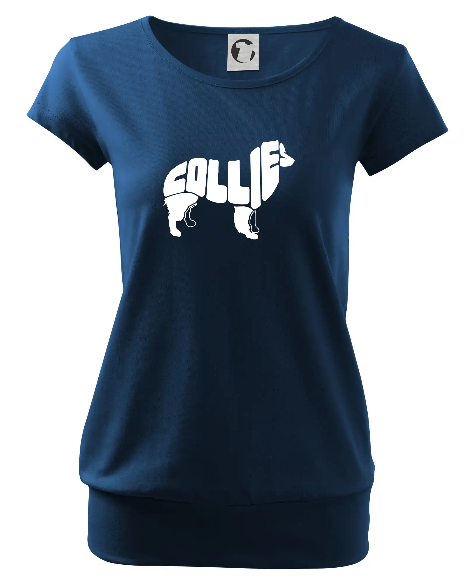 Trendové dámske tričko s veľmi krátkym rukávom, voľnejšieho strihu, v dolnom kraji všité do širokého lemu. Okrúhly priekrčník s úzkym lemom zo zhodného materiálu.
