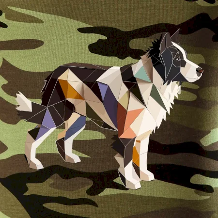 Tričko strednej gramáže vo farbách camouflage. Strih s bočnými švami. Lem priekrčníku z rebrového úpletu s prídavkom 5% elastanu. Vnútorná časť zadného priekrčníka začistená páskou vo farbe camouflage.
