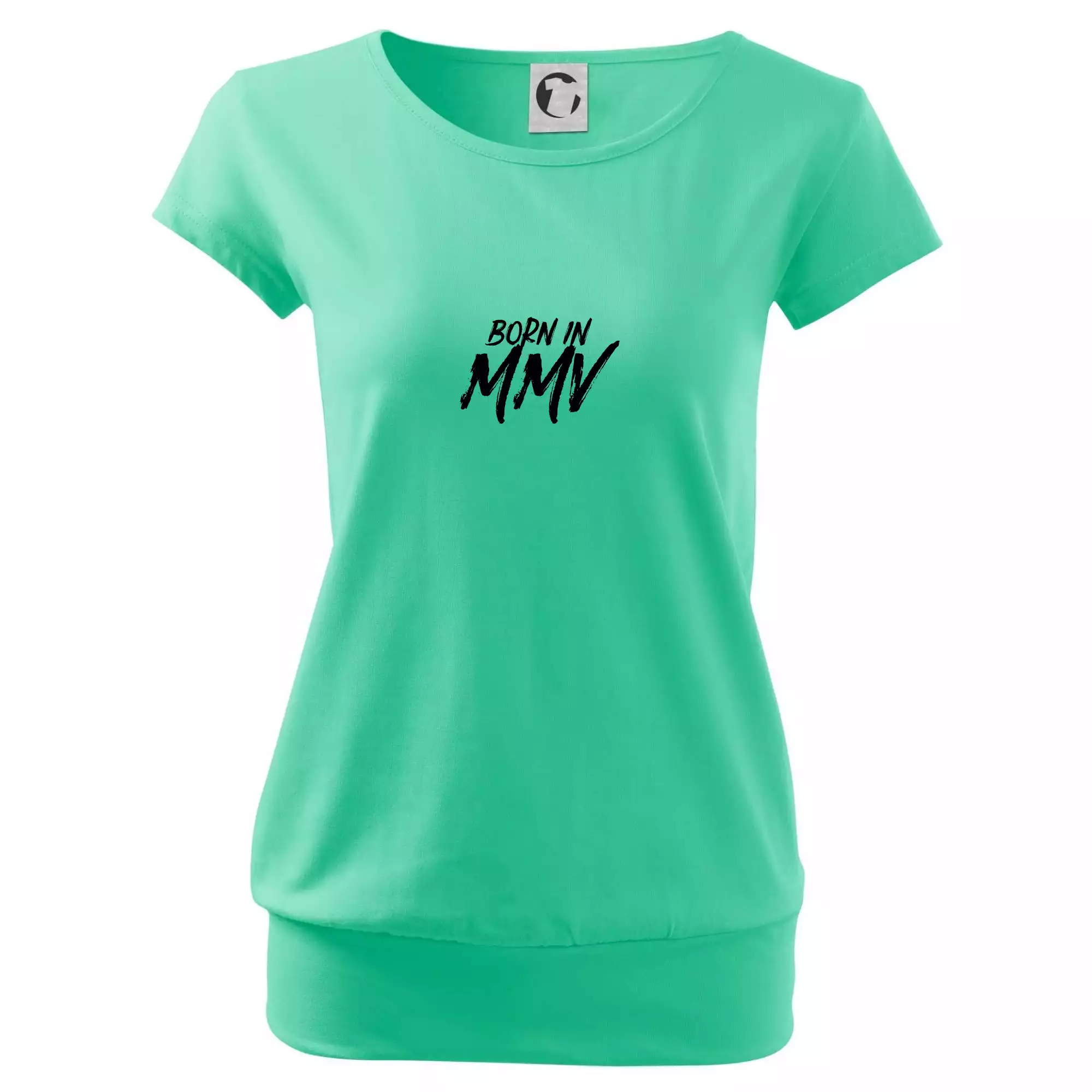 Trendové dámske tričko s veľmi krátkym rukávom, voľnejšieho strihu, v dolnom kraji všité do širokého lemu. Okrúhly priekrčník s úzkym lemom zo zhodného materiálu.