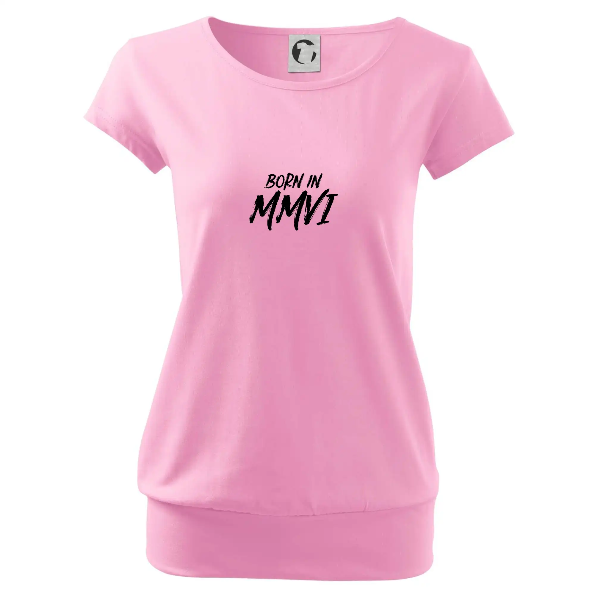 Trendové dámske tričko s veľmi krátkym rukávom, voľnejšieho strihu, v dolnom kraji všité do širokého lemu. Okrúhly priekrčník s úzkym lemom zo zhodného materiálu.