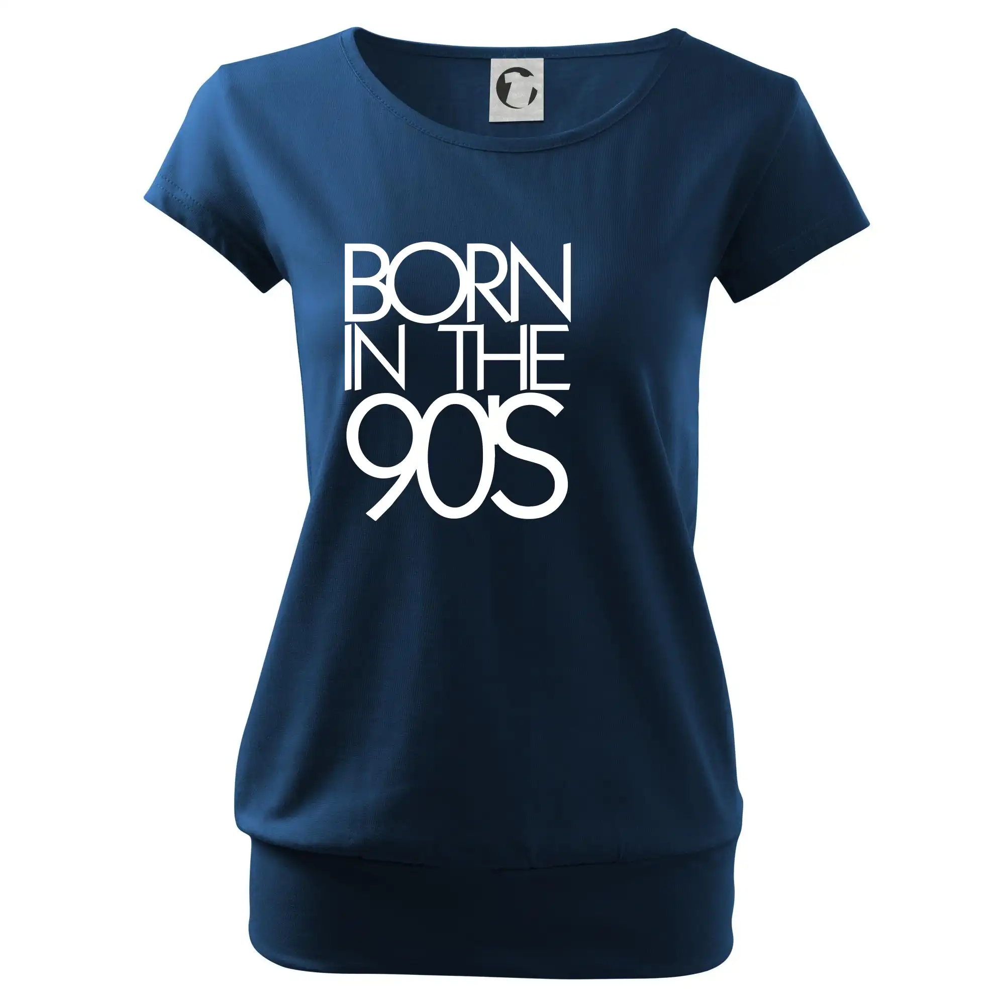 Trendové dámske tričko s veľmi krátkym rukávom, voľnejšieho strihu, v dolnom kraji všité do širokého lemu. Okrúhly priekrčník s úzkym lemom zo zhodného materiálu.