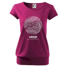 Trendové dámske tričko s veľmi krátkym rukávom, voľnejšieho strihu, v dolnom kraji všité do širokého lemu. Okrúhly priekrčník s úzkym lemom zo zhodného materiálu.