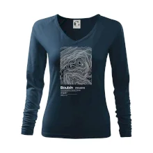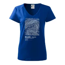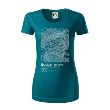 Dámske tričko s ľahko priliehavým strihom, ktorý pôsobí elegantne a skvele padne. Tento typ trička má kratšie rukávy a hlbší výstrih zakončený jemným lemovaním.