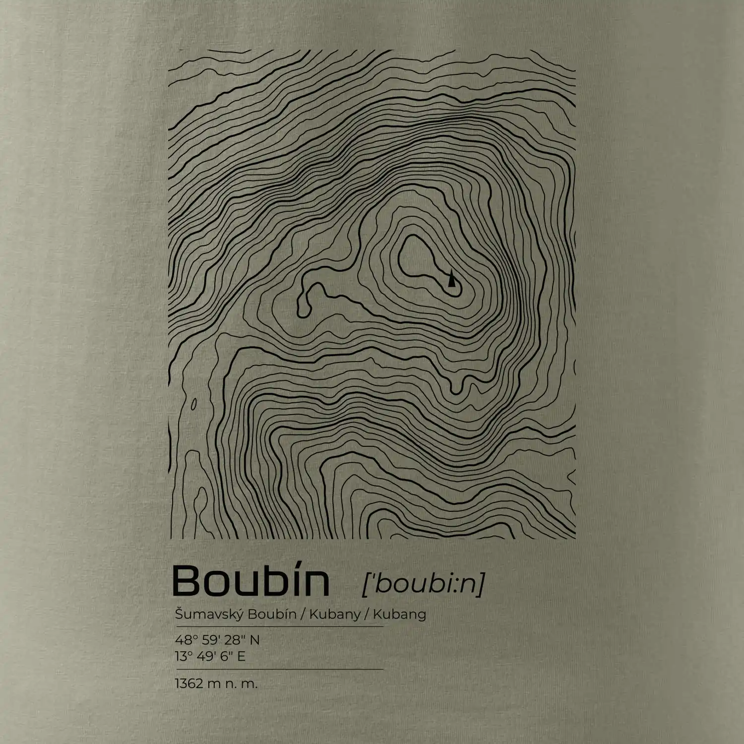 Boubín - vrstevnice v obdĺžniku