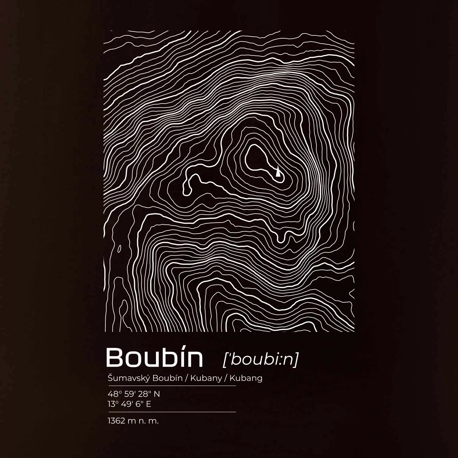 Boubín - vrstevnice v obdĺžniku