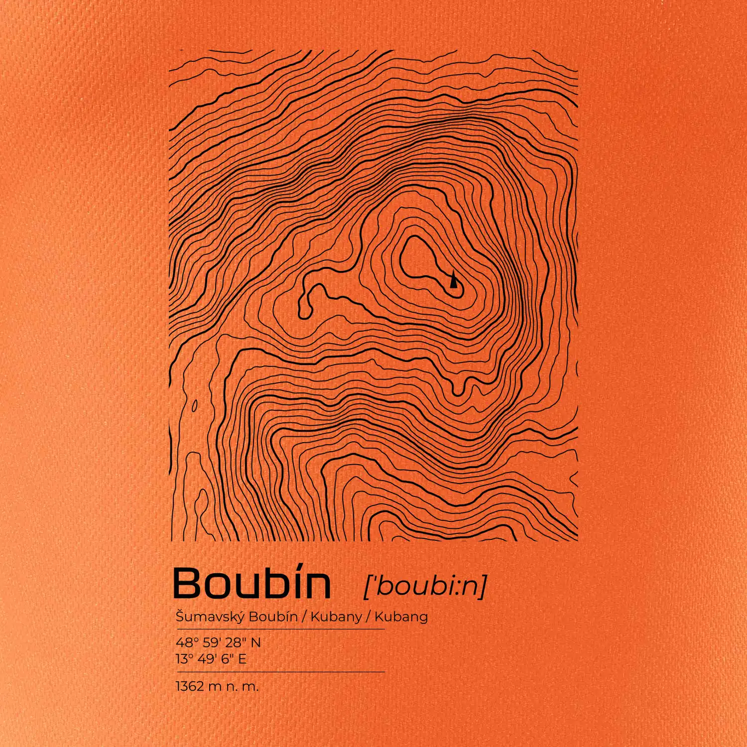 Boubín - vrstevnice v obdĺžniku