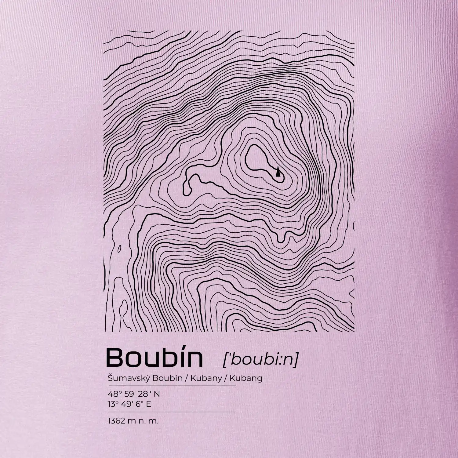 Boubín - vrstevnice v obdĺžniku