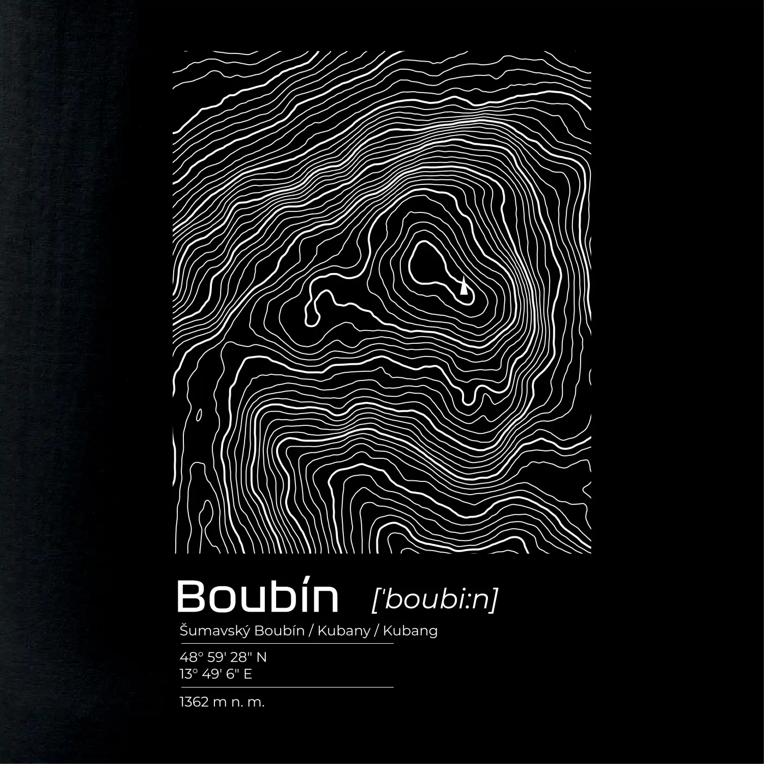 Boubín - vrstevnice v obdĺžniku