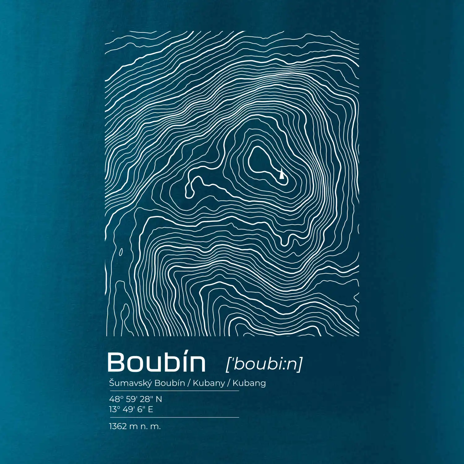 Boubín - vrstevnice v obdĺžniku