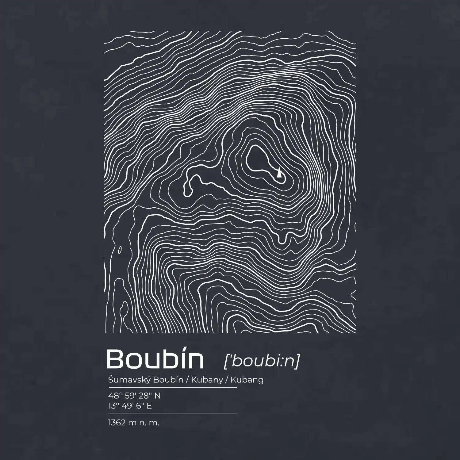 Boubín - vrstevnice v obdĺžniku