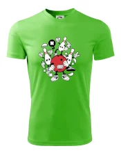 Tričko pre hráča bowlingu, na ktorom je bowlingová guľa s kolky. Bowlingové tričko by mal mať každý bowlingový hráč. S bowlingovým tričkom to bude samý strike, žiadna kolka neunikne!