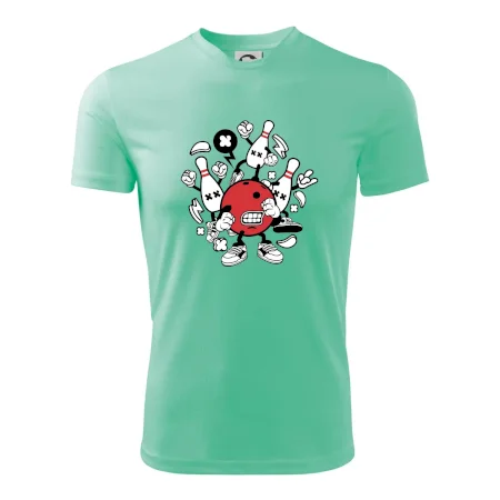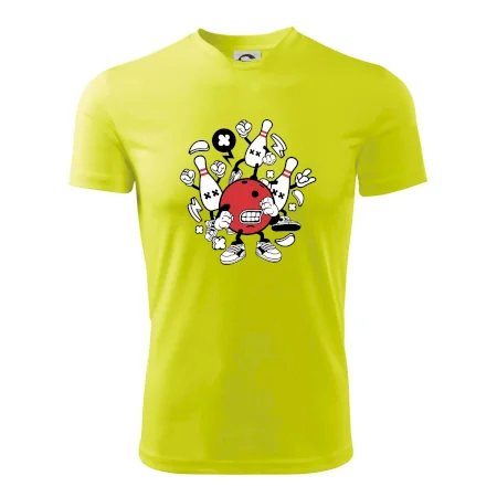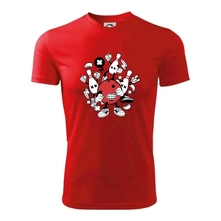 Tričko pre hráča bowlingu, na ktorom je bowlingová guľa s kolky. Bowlingové tričko by mal mať každý bowlingový hráč. S bowlingovým tričkom to bude samý strike, žiadna kolka neunikne!