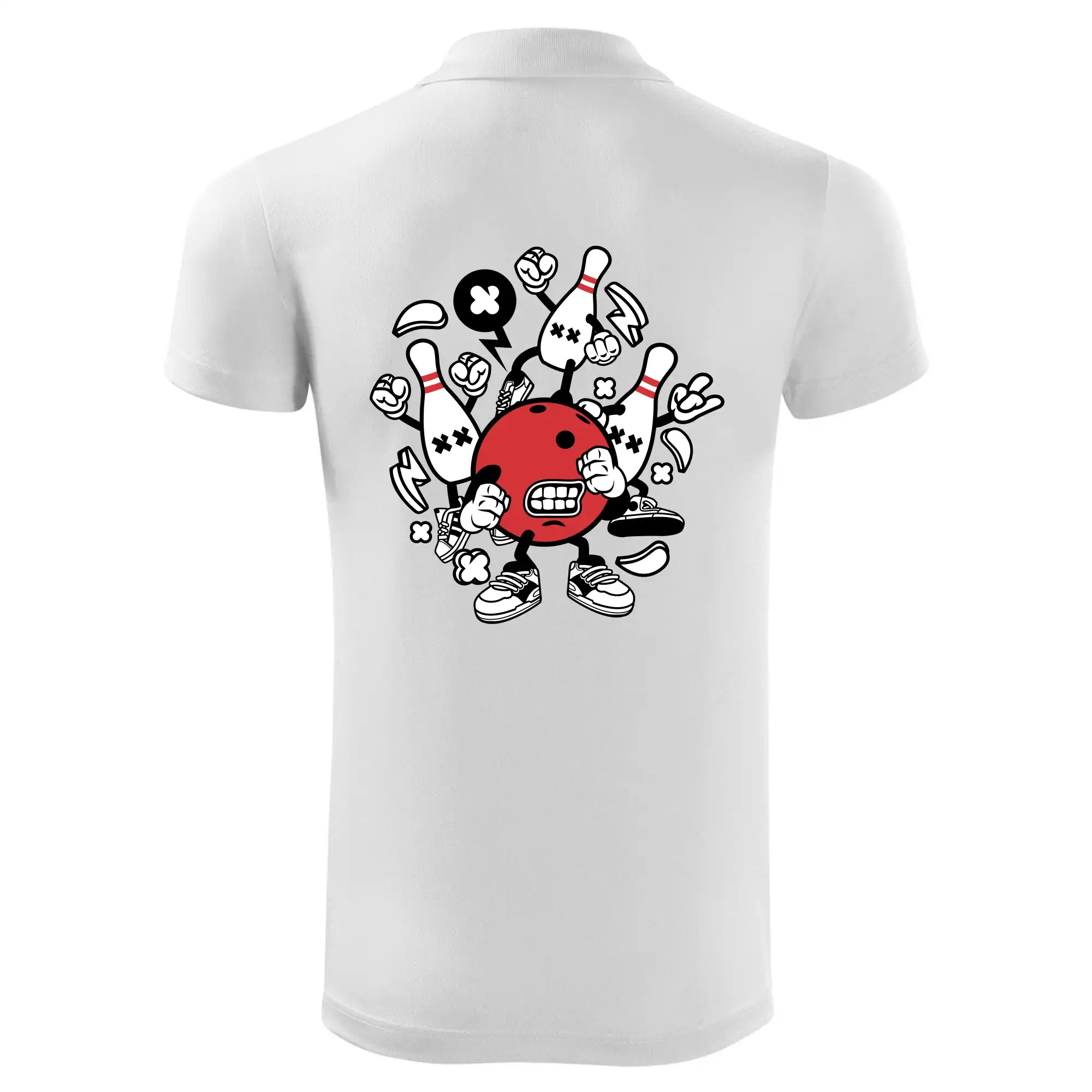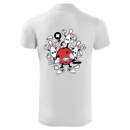 Tričko pre hráča bowlingu, na ktorom je bowlingová guľa s kolky. Bowlingové tričko by mal mať každý bowlingový hráč. S bowlingovým tričkom to bude samý strike, žiadna kolka neunikne!