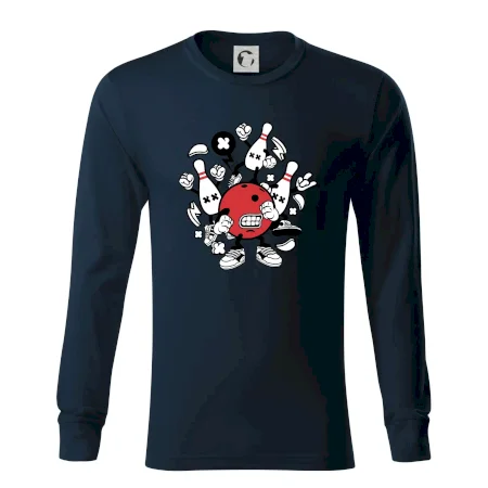 Tričko pre hráča bowlingu, na ktorom je bowlingová guľa s kolky. Bowlingové tričko by mal mať každý bowlingový hráč. S bowlingovým tričkom to bude samý strike, žiadna kolka neunikne!