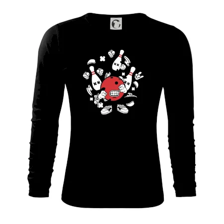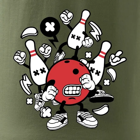Tričko pre hráča bowlingu, na ktorom je bowlingová guľa s kolky. Bowlingové tričko by mal mať každý bowlingový hráč. S bowlingovým tričkom to bude samý strike, žiadna kolka neunikne!