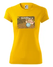 Dámske tričko s ľahko priliehavým strihom, ktorý pôsobí elegantne a skvele padne. Tento typ trička má kratšie rukávy a hlbší výstrih zakončený jemným lemovaním.