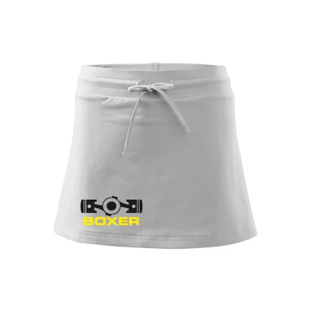 Dámska kraťasová sukňa MALFINI Two in One 604 je perfektnou kombináciou sukne a šortiek, ideálna na šport, voľný čas alebo ležérne nosenie. Vďaka prídavku elastanu si sukňa zachováva tvar a ponúka pohodlie pri pohybe. Krátky strih do tvaru „A“ a široký elastický pás so sťahovacou šnúrkou zabezpečujú voľnosť a prispôsobenie.