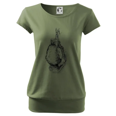 Trendové dámske tričko s veľmi krátkym rukávom, voľnejšieho strihu, v dolnom kraji všité do širokého lemu. Okrúhly priekrčník s úzkym lemom zo zhodného materiálu.
