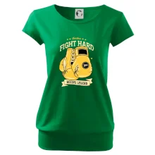 Tričko pre boxera, na ktorom sú boxerské rukavice, je vhodný darček, pre športovca, ktorý má rád box. Tričko pre športovca si užije hlavne športovec boxer. Pokiaľ chceš darček pre boxera, kúp mu tričko s motívom Fight hard- Boxing llegend.