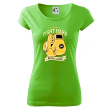 Tričko pre boxera, na ktorom sú boxerské rukavice, je vhodný darček, pre športovca, ktorý má rád box. Tričko pre športovca si užije hlavne športovec boxer. Pokiaľ chceš darček pre boxera, kúp mu tričko s motívom Fight hard- Boxing llegend.