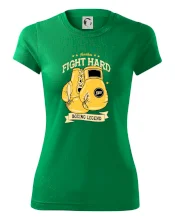 Tričko pre boxera, na ktorom sú boxerské rukavice, je vhodný darček, pre športovca, ktorý má rád box. Tričko pre športovca si užije hlavne športovec boxer. Pokiaľ chceš darček pre boxera, kúp mu tričko s motívom Fight hard- Boxing llegend.
