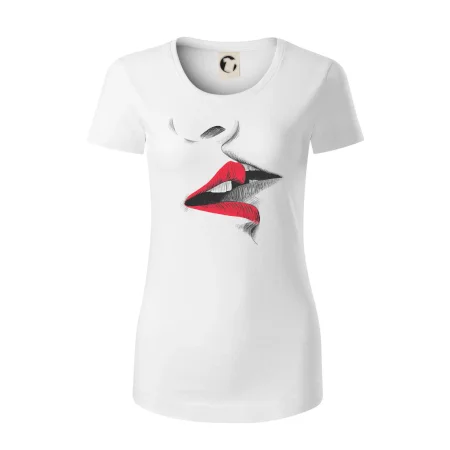 Tričko pre zamilovaných, kde sú ako hlavný motív bozkávajúce sa pery. Bozk na tričku je vhodný darček pre zamilovaný pár napríklad k Valentínu. Bozk vyzerá ako skutočný, tak kúp toto tričko svojej milej a bozkávanie môže preskočiť z trička do skutočnosti. .