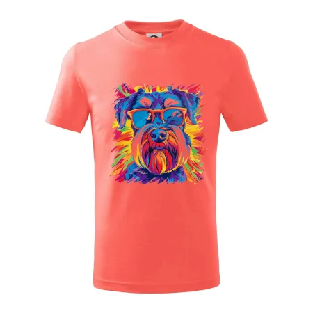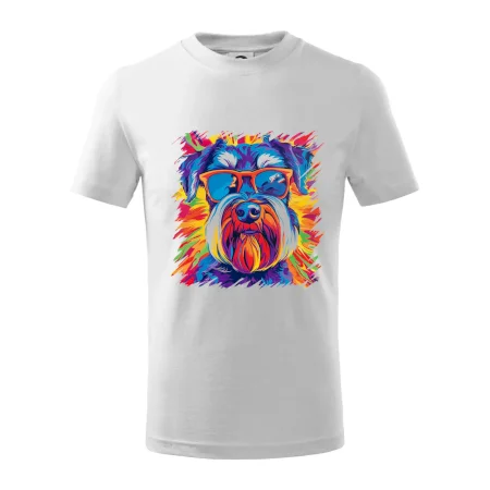 Detské tričko strednej gramáže s bočnými švami. Úzky priekrčník s prídavkom 5% elastanu. Vnútorná časť zadného priekrčníka začistená tkanou páskou. Spevnený ramenný šev.