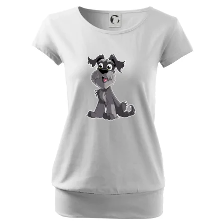 Trendové dámske tričko s veľmi krátkym rukávom, voľnejšieho strihu, v dolnom kraji všité do širokého lemu. Okrúhly priekrčník s úzkym lemom zo zhodného materiálu.