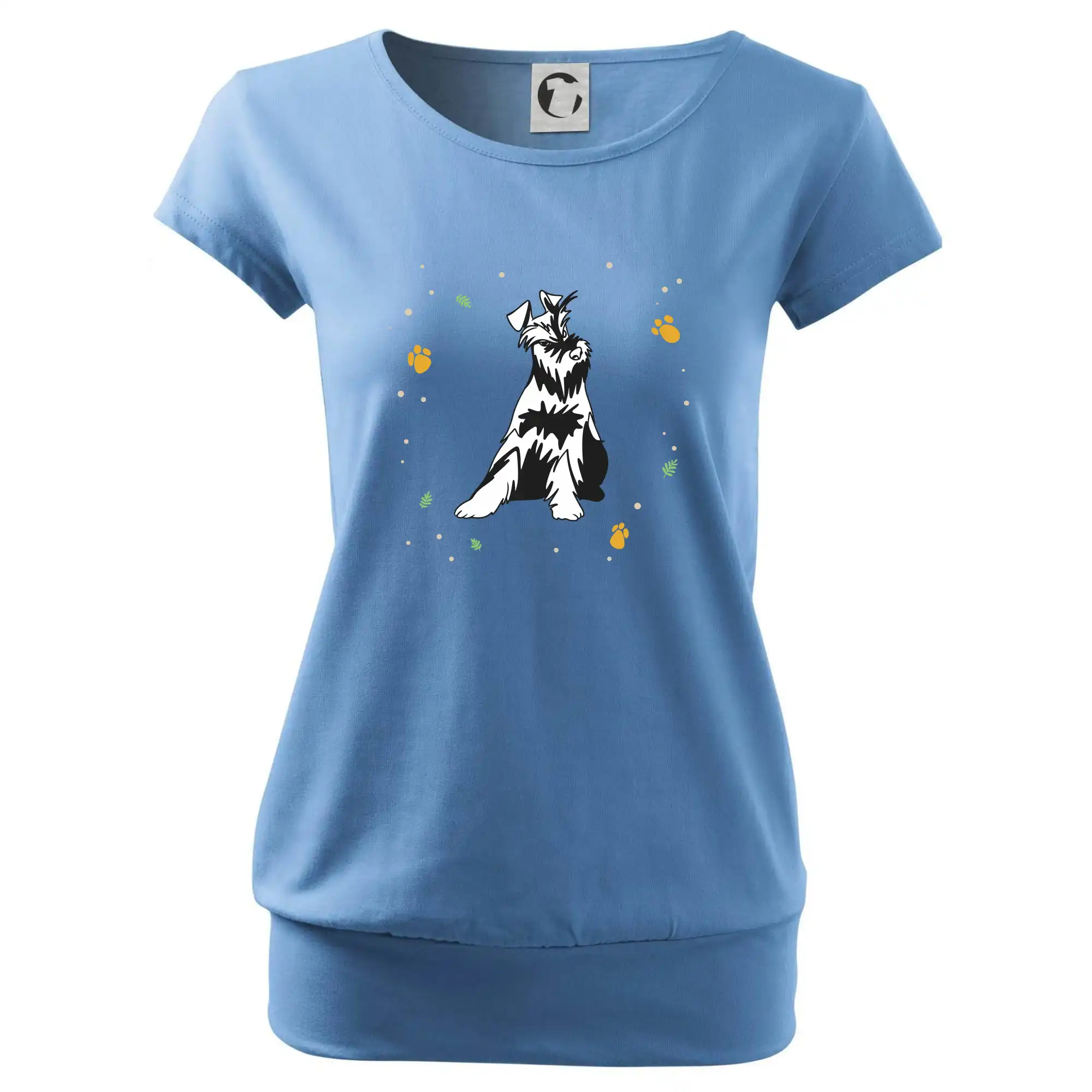 Trendové dámske tričko s veľmi krátkym rukávom, voľnejšieho strihu, v dolnom kraji všité do širokého lemu. Okrúhly priekrčník s úzkym lemom zo zhodného materiálu.