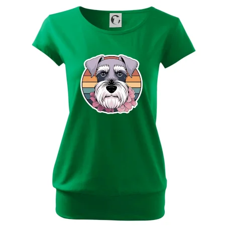 Trendové dámske tričko s veľmi krátkym rukávom, voľnejšieho strihu, v dolnom kraji všité do širokého lemu. Okrúhly priekrčník s úzkym lemom zo zhodného materiálu.